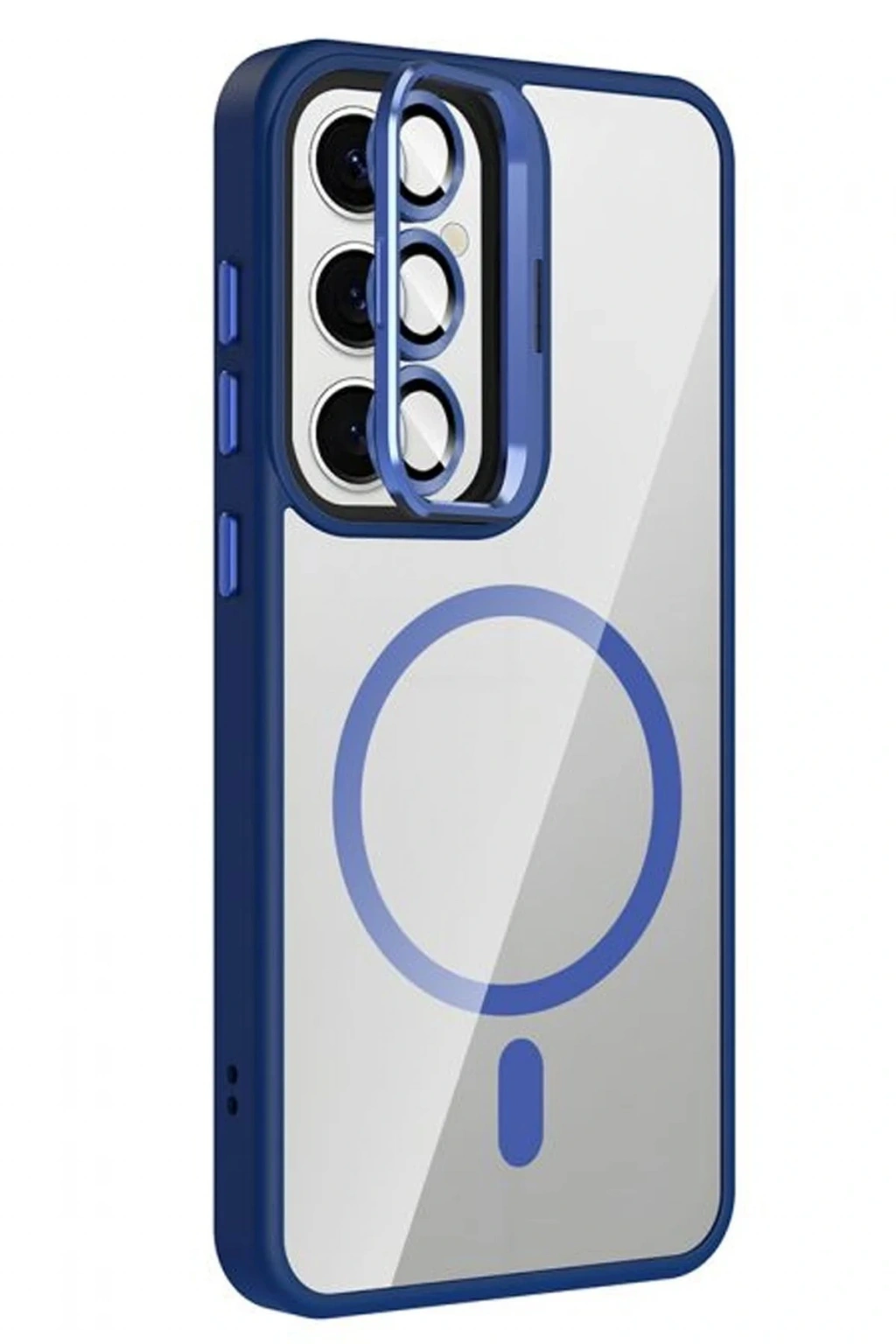 Samsung Galaxy S25 FE Remim Lensli Magsafe Standlı Kapak - Lacivert