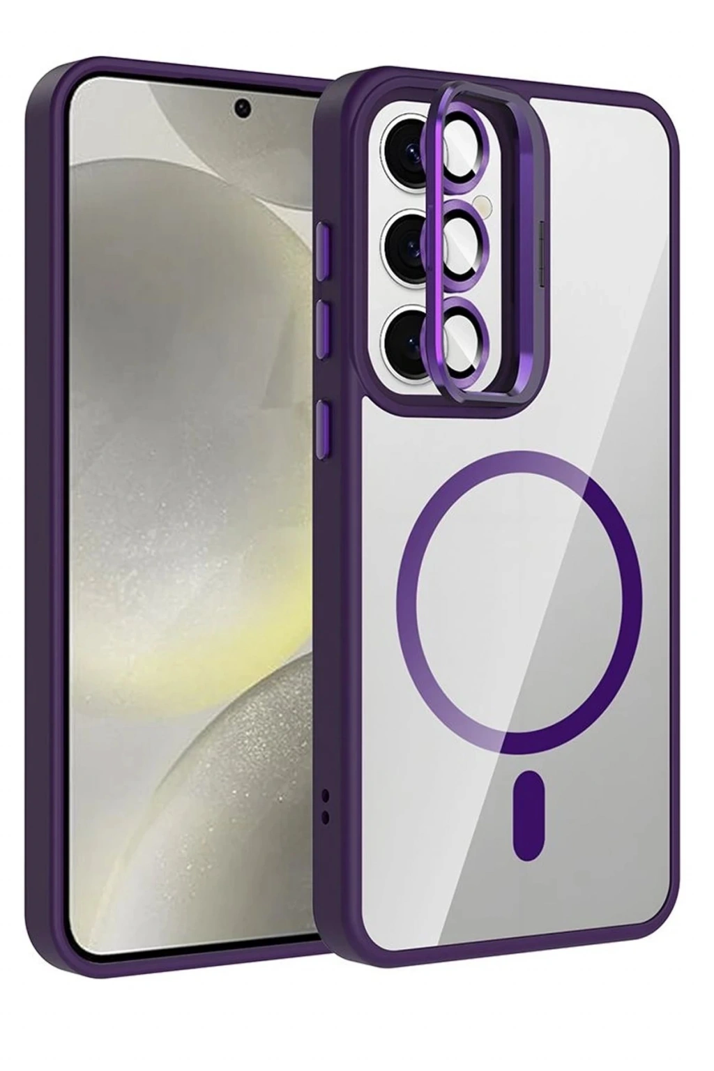 Samsung Galaxy S25 Remim Lensli Magsafe Standlı Kapak - Derin Mor