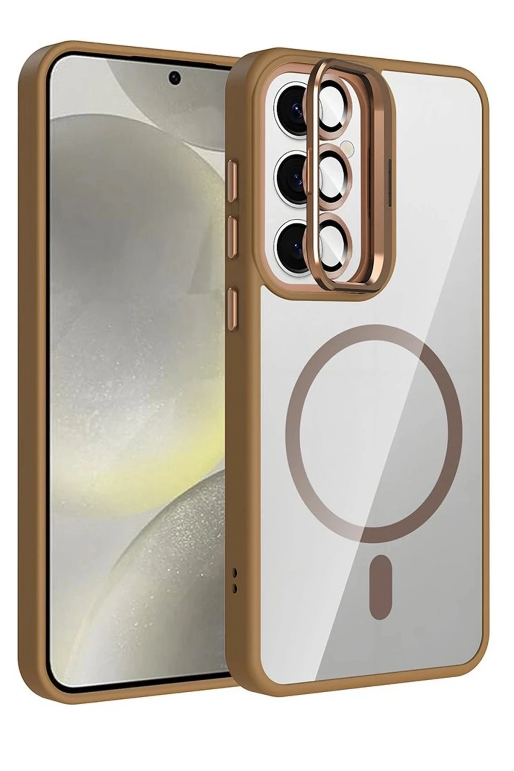 Samsung Galaxy S25 Remim Lensli Magsafe Standlı Kapak - Kahverengi