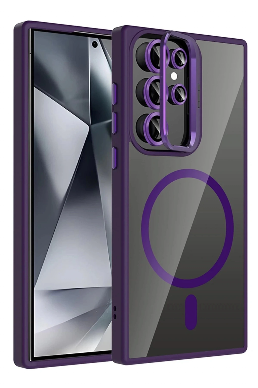 Samsung Galaxy S25 Ultra Remim Lensli Magsafe Standlı Kapak - Derin Mor