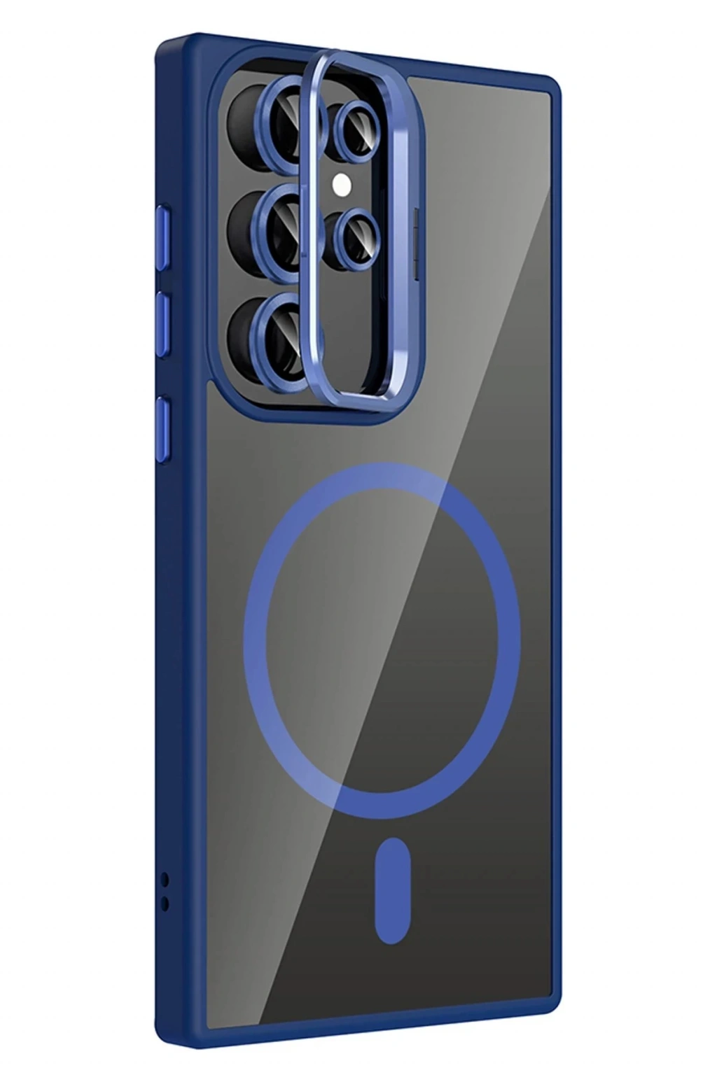 Samsung Galaxy S25 Ultra Remim Lensli Magsafe Standlı Kapak - Lacivert