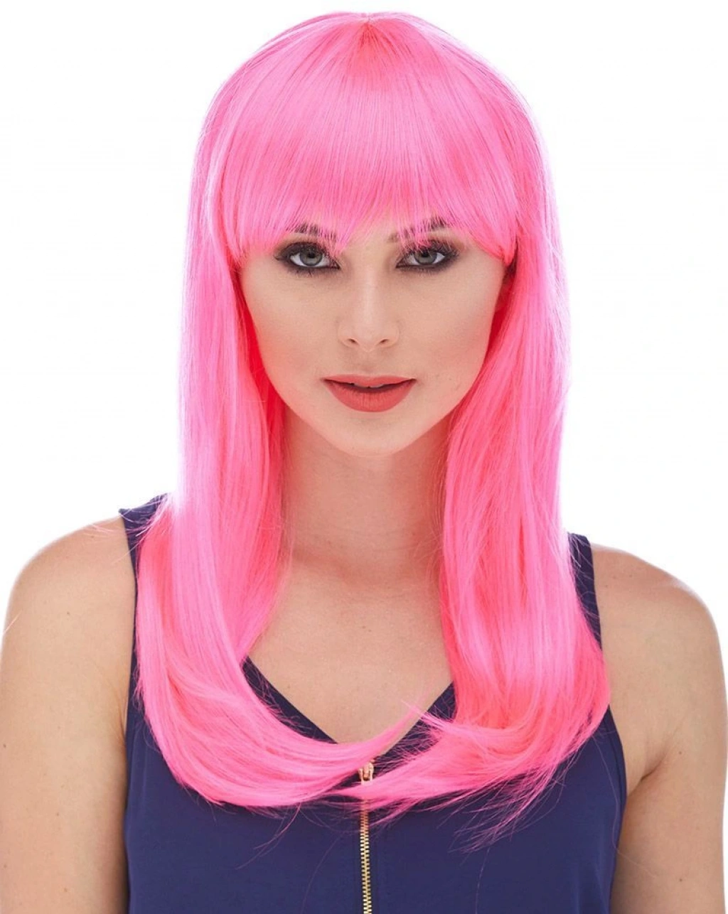 • Şeker Pembesi Koyu Pembe Renk Uzun Düz Parti Peruğu (4172)