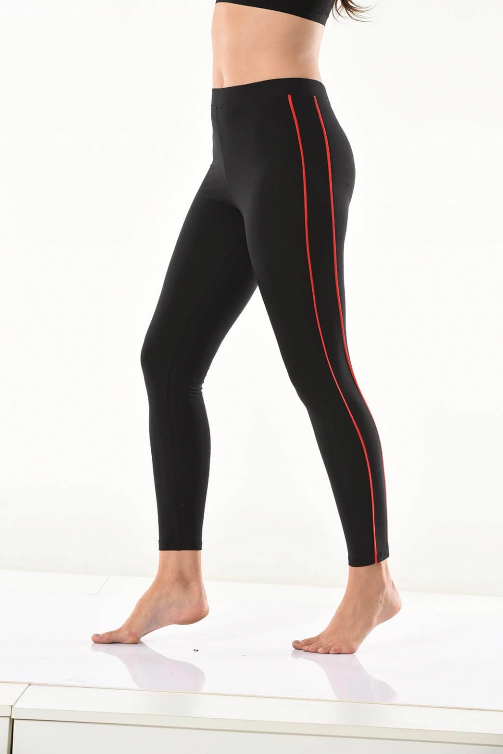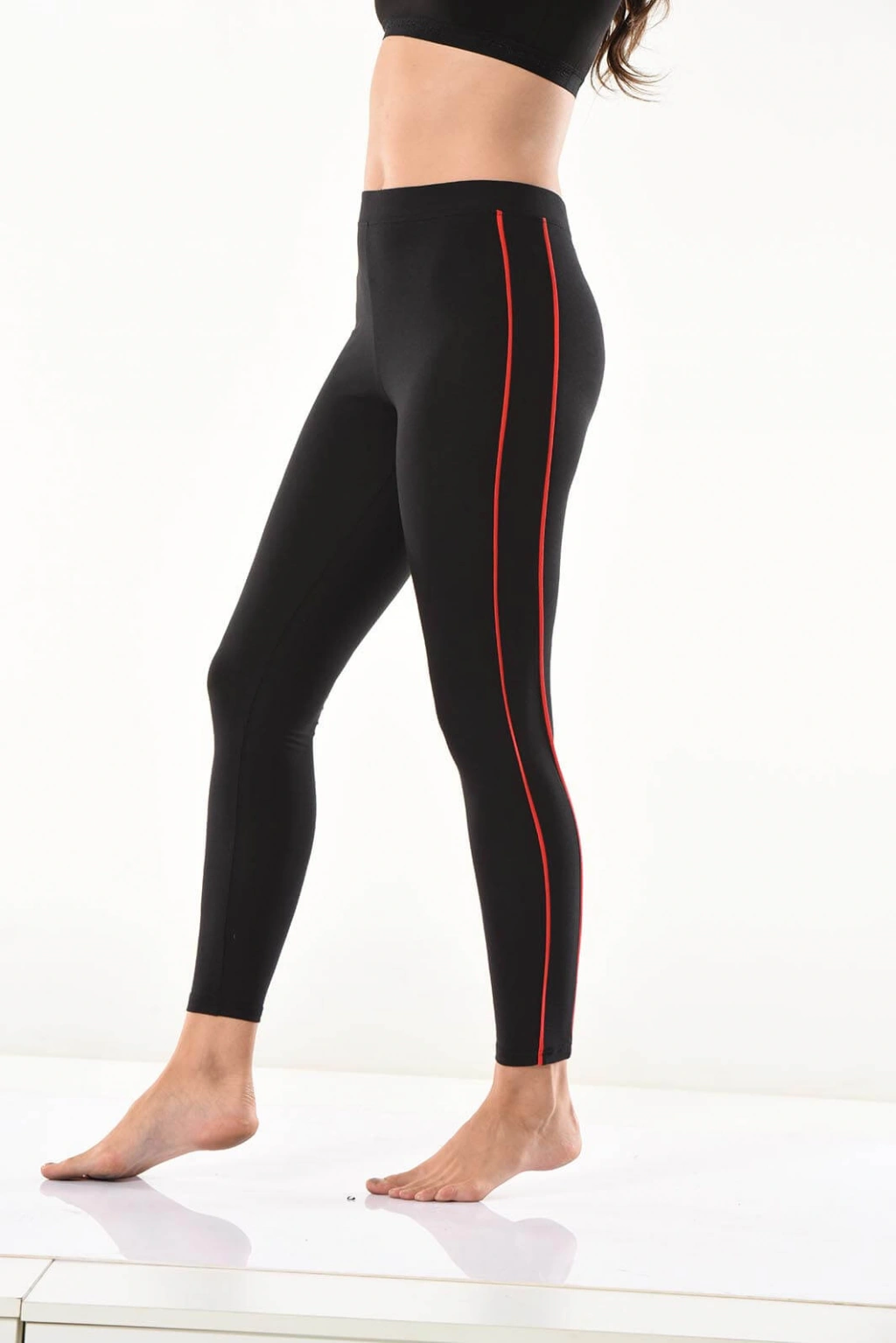 Yeni sezon şerit detaylarıyla şık bir görünüm kazandıran kadın tayt modelidir.