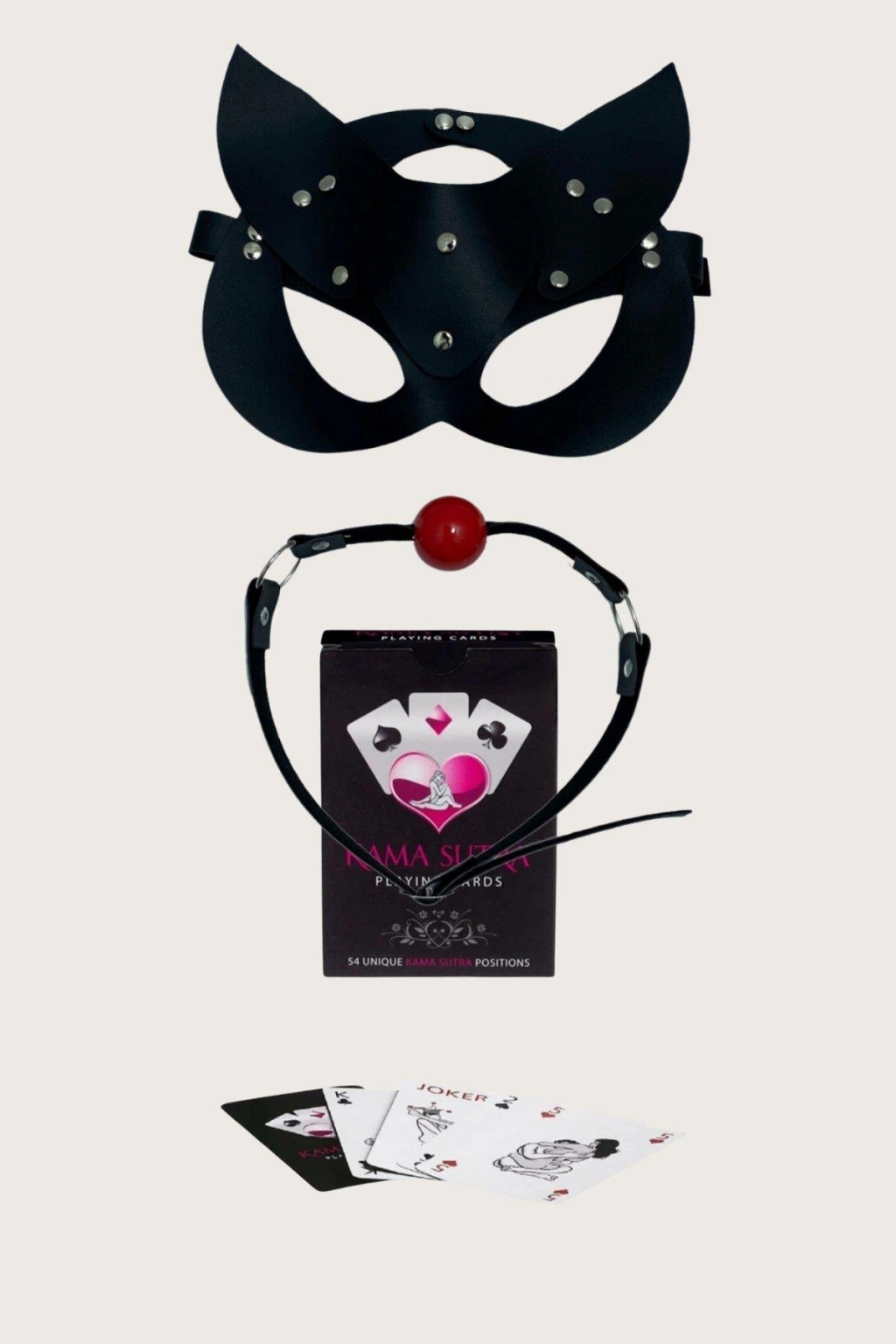 Sexy Görselli Oyun Kartı Kama Sutra Siyah Ağız Topu Maske Set