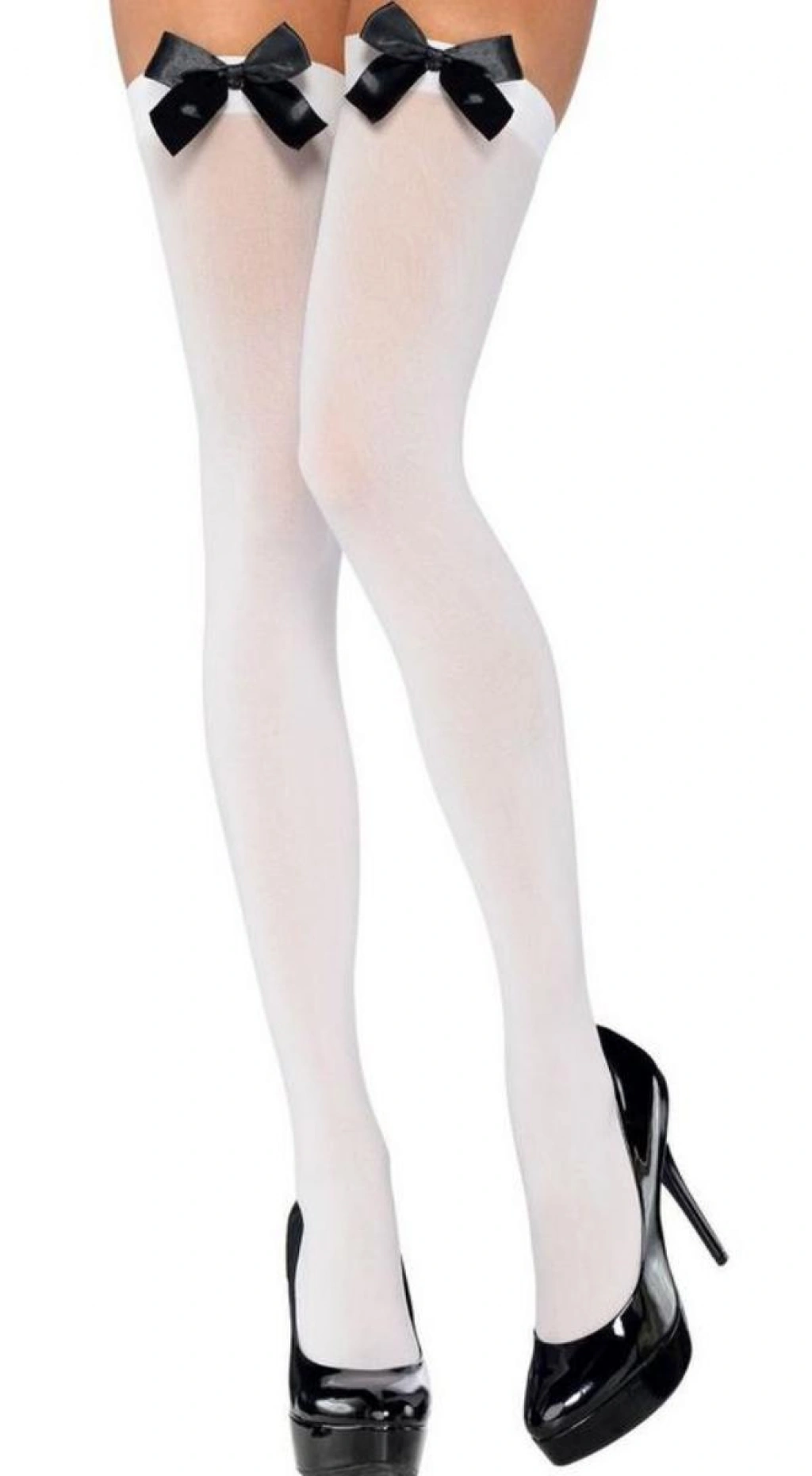 Siyah Fiyonklu Beyaz Jartiyer Çorabı Brf1197