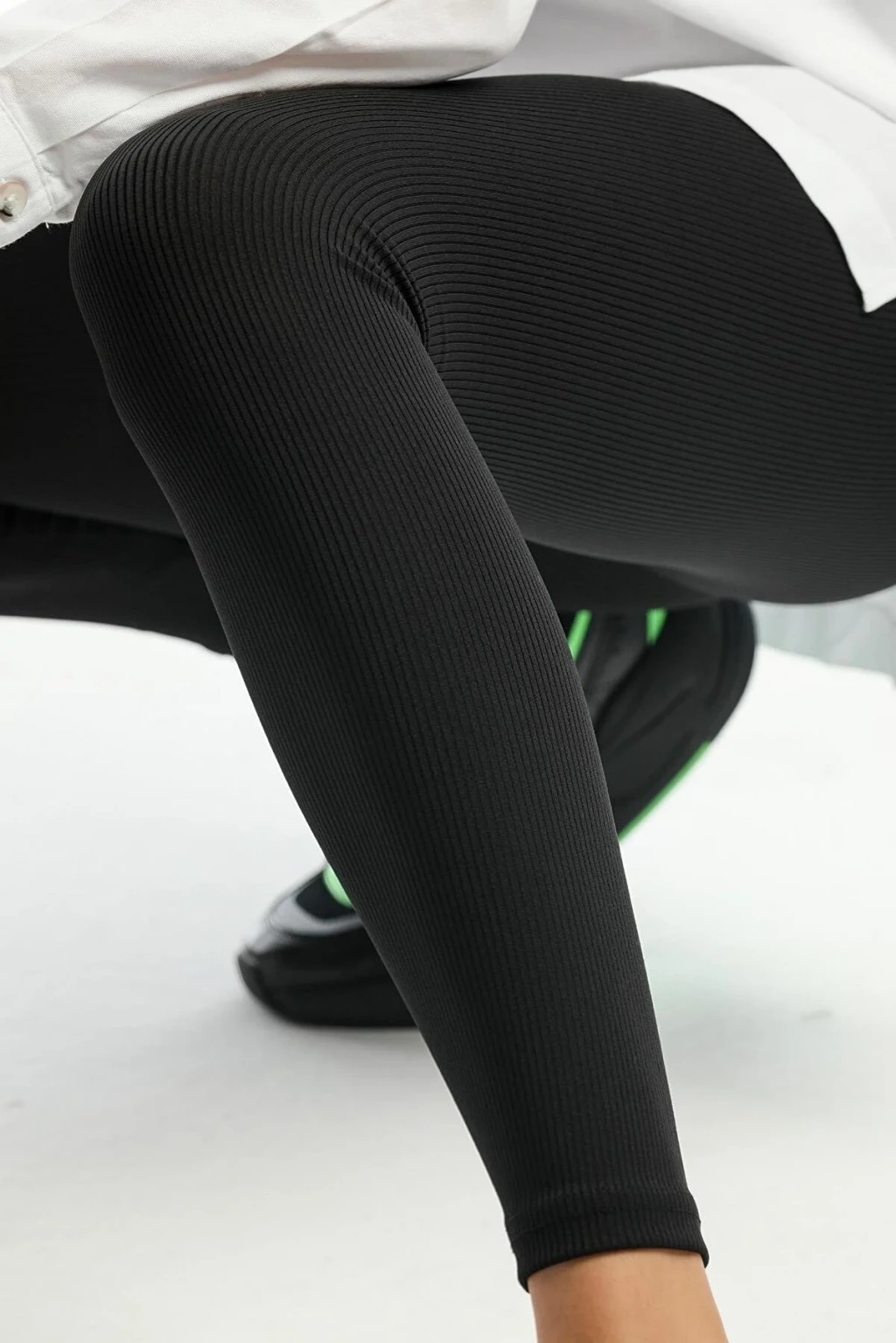 Siyah Yüksek Bel Fitilli Tayt 0608
