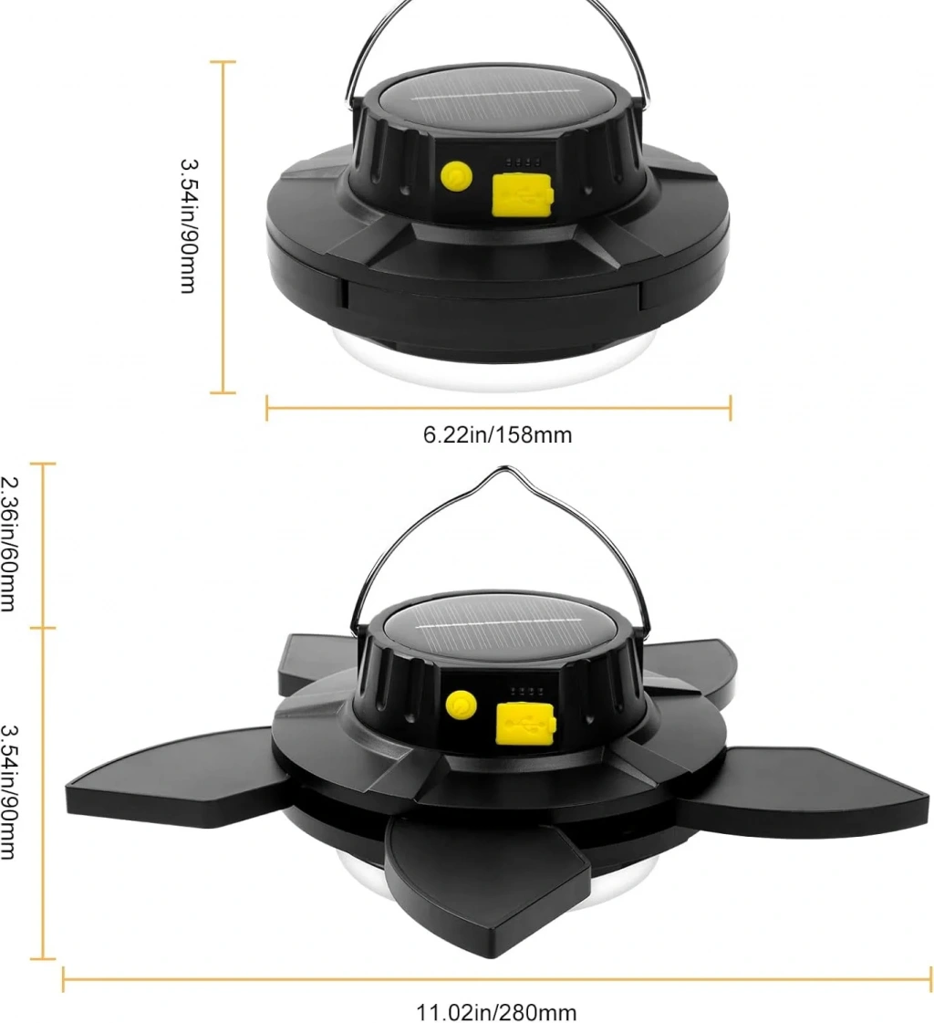 Bu çok fonksiyonlu kamp lambası, açık hava etkinlikleriniz için mükemmel bir çözümdür. Güneş enerjisiyle şarj olabilen paneli sayesinde, çevre dostu bir enerji kaynağı sunar ve dış mekanlarda elektrik kullanımı ihtiyacını ortadan kaldırır. Ürün aynı zamanda telefonlarınızı şarj etme imkânı sağlar, böylece uzun süreli kamp ve doğa yürüyüşlerinde elektronik cihazlarınızı güvende tutabilirsiniz.