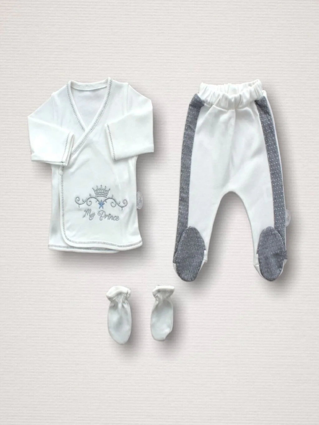 Süper Prens Nakışlı 10lu Zıbın Takımı Hastane Çıkışı Gri