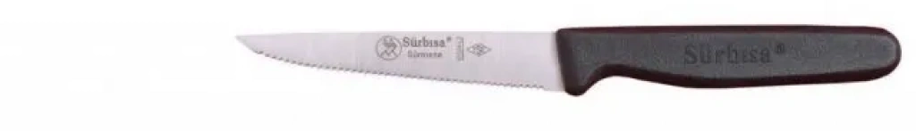 Sürbısa 61004LZ Sürmene Lazerli, Tırtıklı Sebze Bıçağı 9,5 cm, tırtıklı kenarı ve lazerli kesim yüzeyi ile sebzelerin kesilmesinde yüksek performans sağlar. Yüksek kaliteli malzemeleri, ergonomik sapı ve işlevsel tasarımı ile hem profesyonel şefler hem de ev kullanıcıları için uygun bir bıçaktır. Sebzeleri hassas bir şekilde işlemek ve estetik kesimler yapmak isteyenler için ideal bir seçimdir. Doğru bakım ve temizlikle uzun ömürlü bir kullanım sunar.