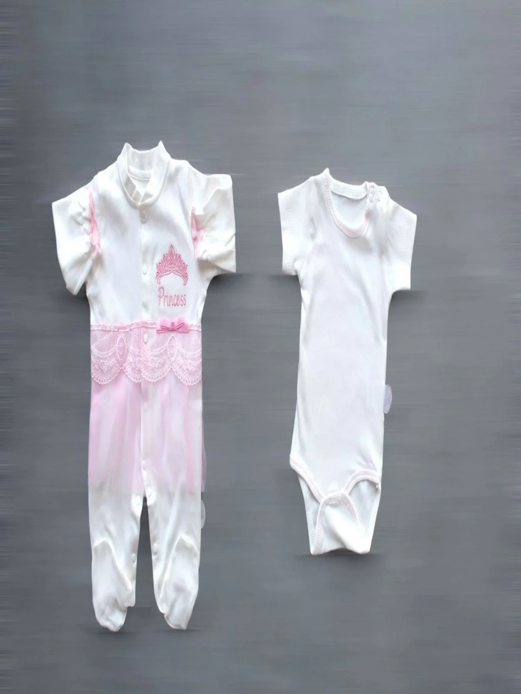 • Taçlı Prensesim Nakışlı %100 Cotton Antibakteriyel 10lu Zıbın Takımı Hastane Çıkışı