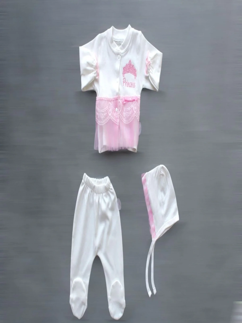 Taçlı Prensesim Nakışlı 10lu Zıbın Takımı Hastane Çıkışı Pembe