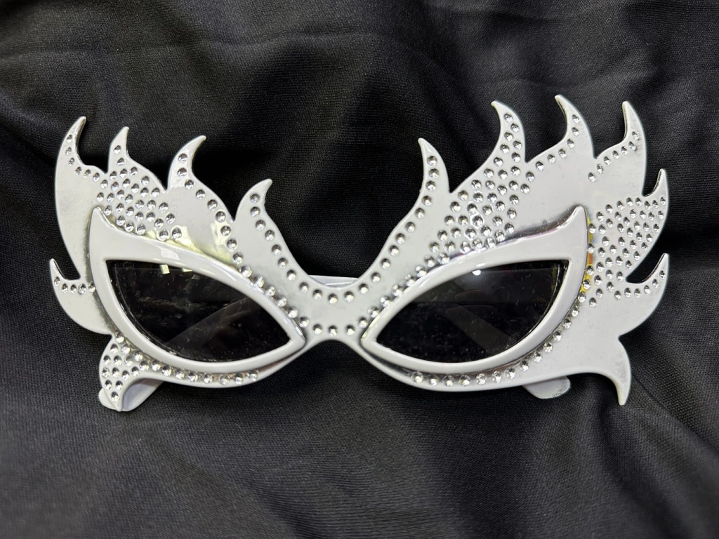 Alev formundaki çerçevesi, ışıltılı taş detayları ve özgün tasarımıyla bu gözlük; maskeli balolardan konsept partilere, gece eğlencelerinden sahne şovlarına kadar her ortamda fark oluşturur.