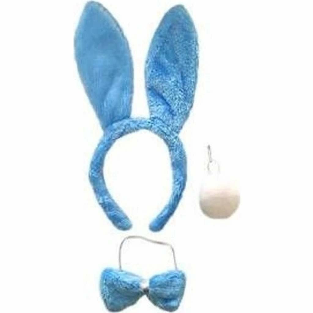Tavşan Kostüm Seti Taç Papyon Ponpon Kuyruk Mavi (4172)