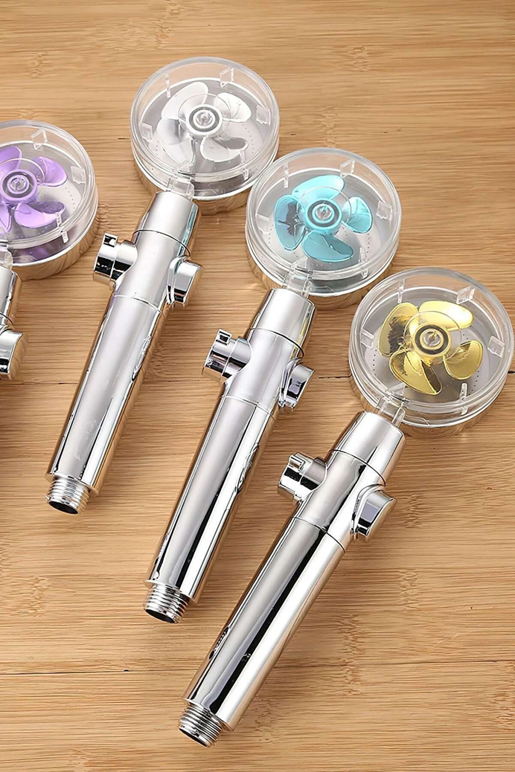 Turbo Duş Başlığı Su Tasarruflu Süzgeçli Fanlı 360 derece dönebilen Hareketli Pervaneli Tazyikli Tuşlu Duş Başlığı