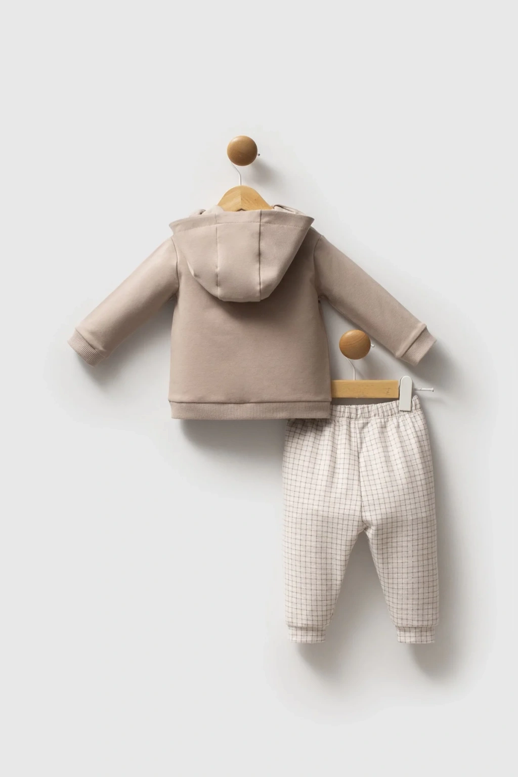9-12-18-24 Ay Pohh Desenli Uzun Kollu Sweat 2li Kız Erkek Bebek Takımı Krem
