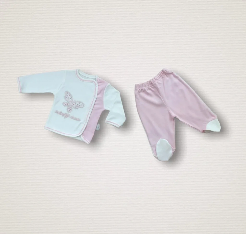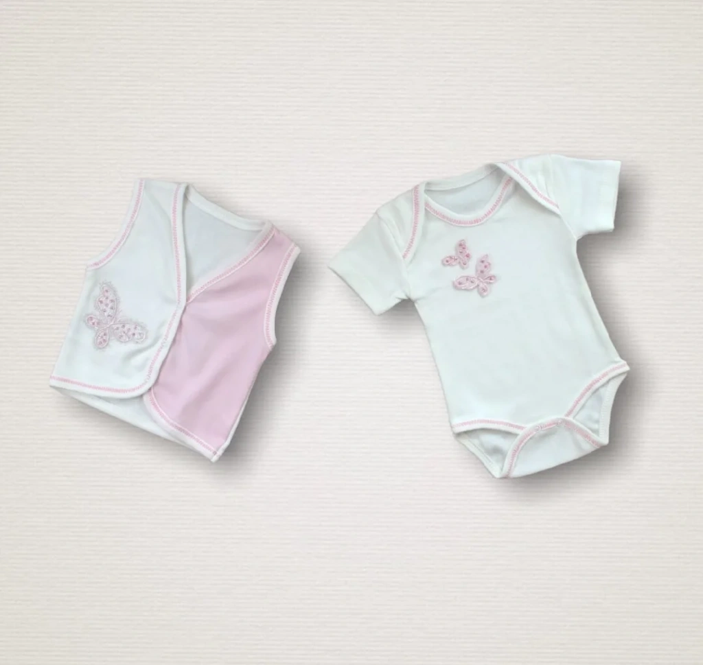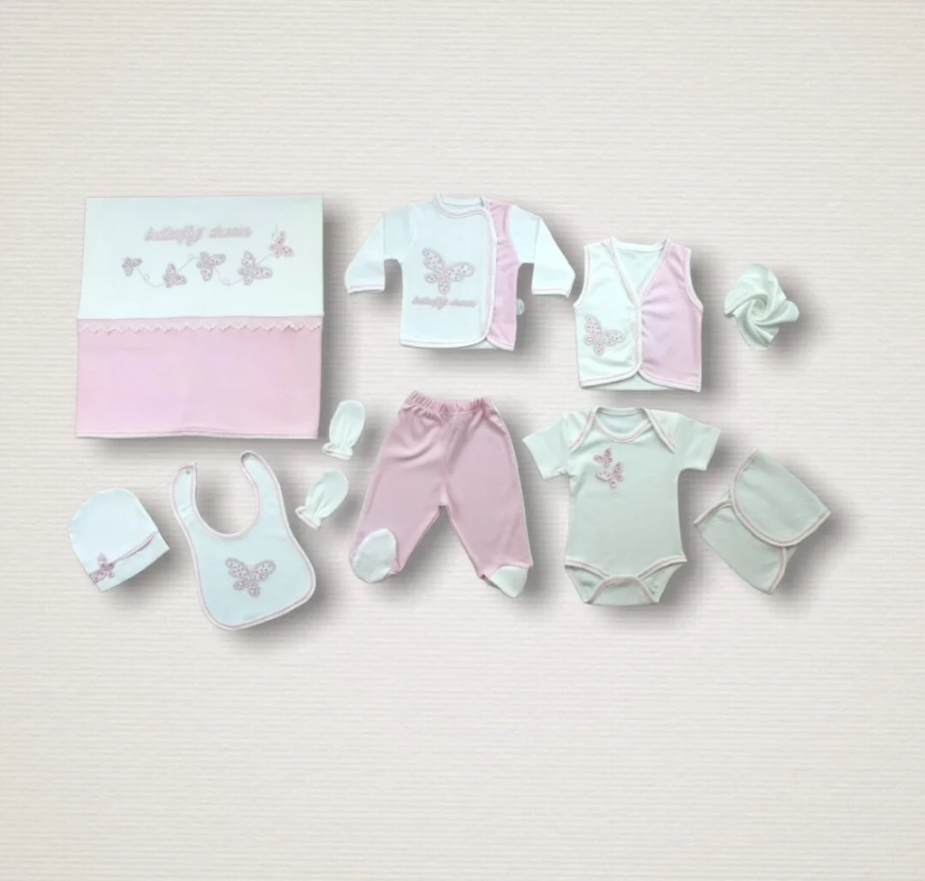Uçan Kelebekler Nakışlı 10lu Zıbın Takımı Hastane Çıkışı Pembe