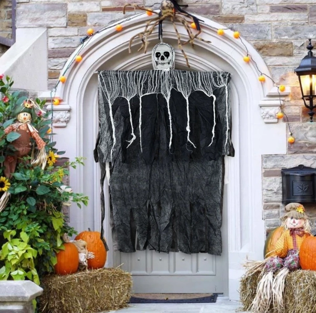 Ürpertici Kuru Kafa Korku Hayalet Saçaklı Dekor 90x50 Cm (4172)