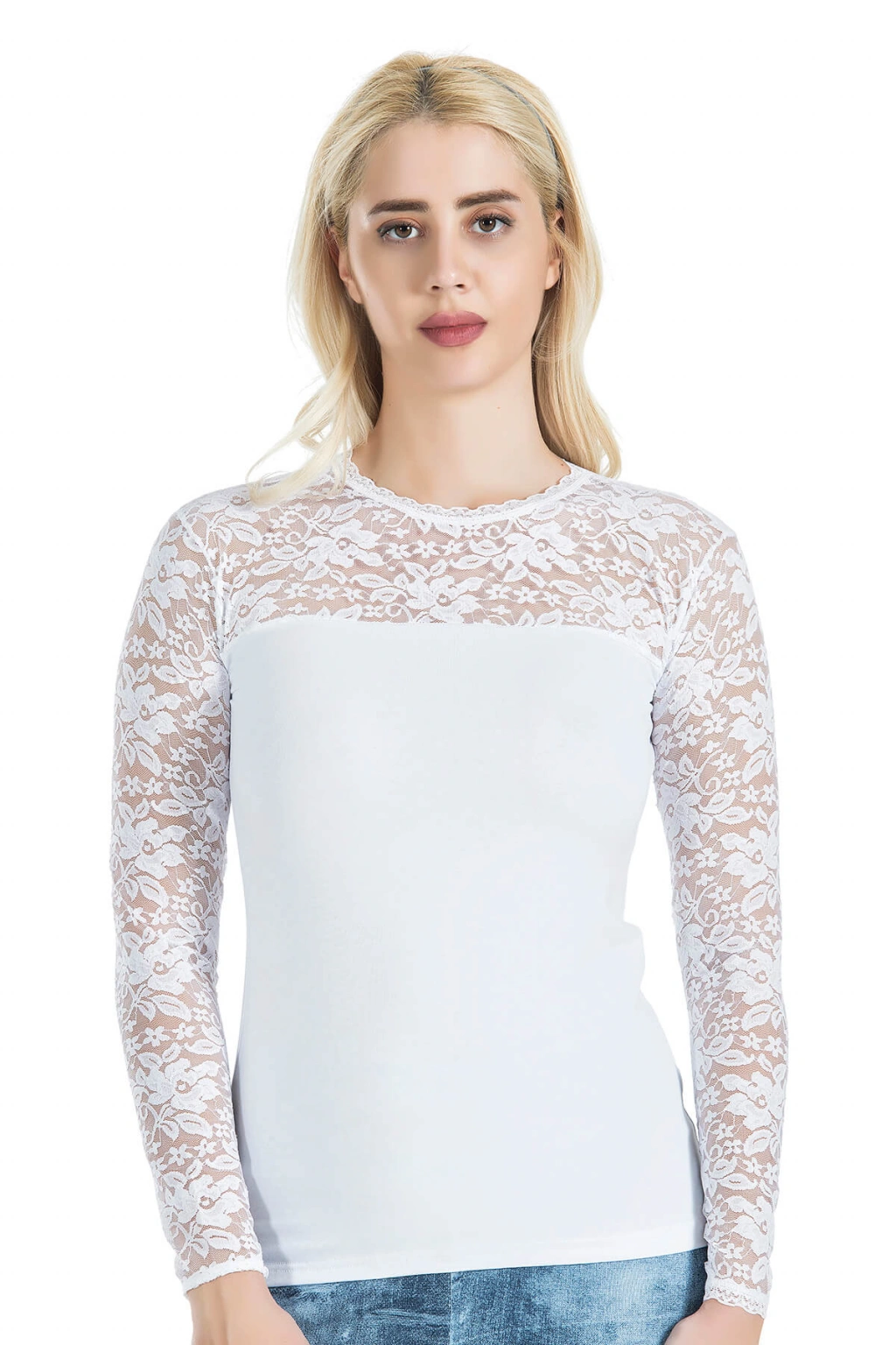 Uzun Kol Balıkçı Yaka Dantelli Kadın Tişört 241