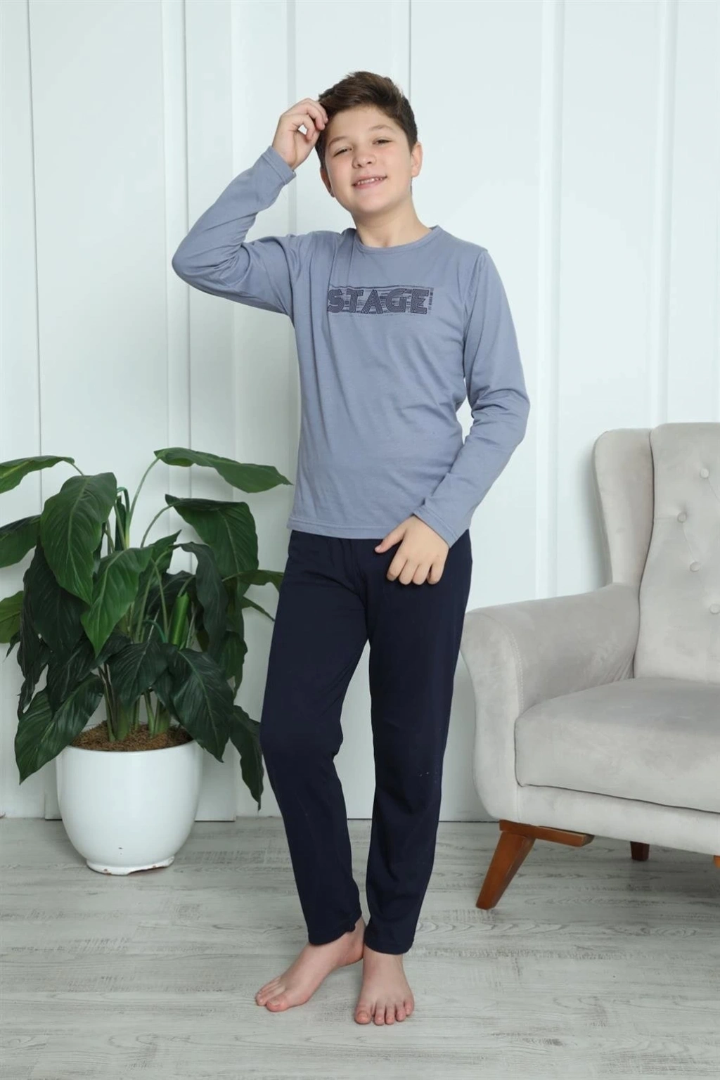 venüsshopping- Erkek Çocuk Uzun Kol Penye Pijama Takım Gri