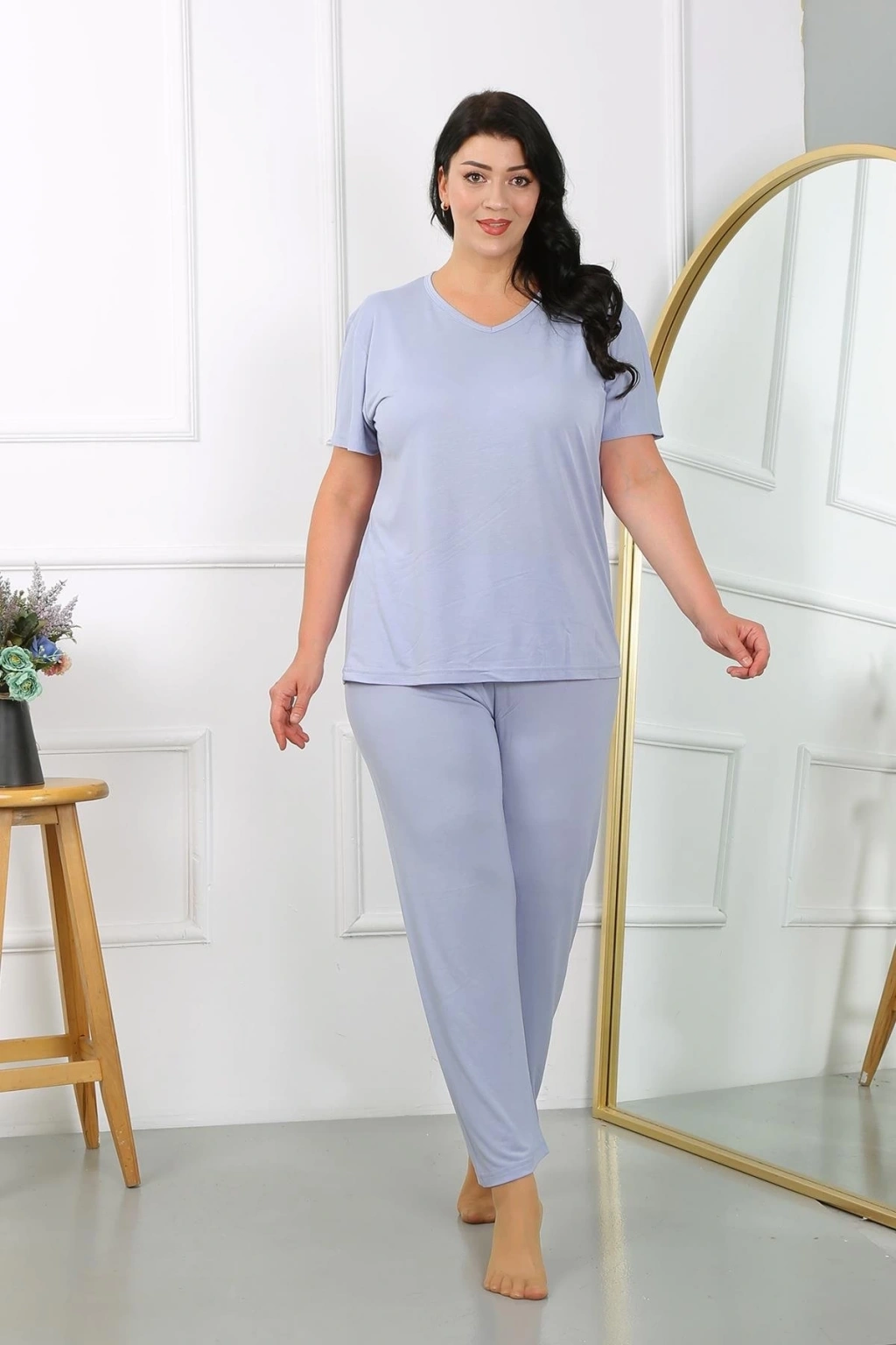 - Kadın Büyük Beden Kısa Kol Penye Pijama Takımı