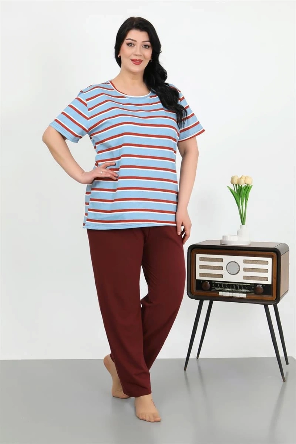 Çamaşır Kenti kadın büyük beden kısa kol penye pijama takımı, rahatlık ve şıklığı bir arada sunuyor. Kaliteli penye kumaşı sayesinde gün boyu konfor sağlarken, mavi rengiyle de şık bir görünüm sunar. Bu pijama takımıyla hem evde rahatça dinlenebilir hem de şıklığınızı ön plana çıkarabilirsiniz.