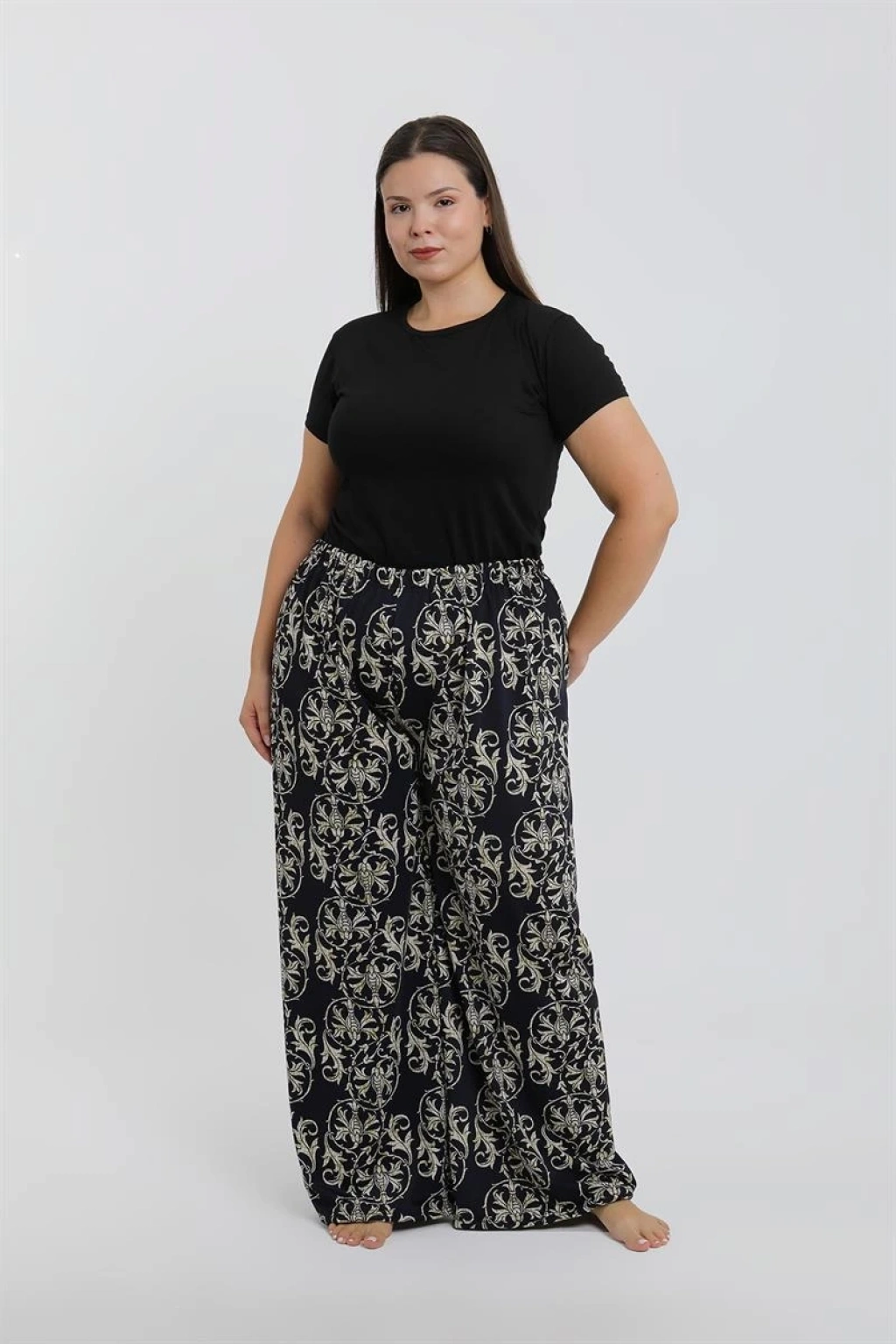 Çamaşır Kenti markasının yeni koleksiyonundan kadın büyük beden lacivert baggy tek alt, şıklığı ve rahatlığı bir arada sunuyor. İster günlük kombinlerinizde, ister özel günlerde tercih edebileceğiniz bu pantolon, her zaman tarzınızı yansıtmanıza olanak tanır.
