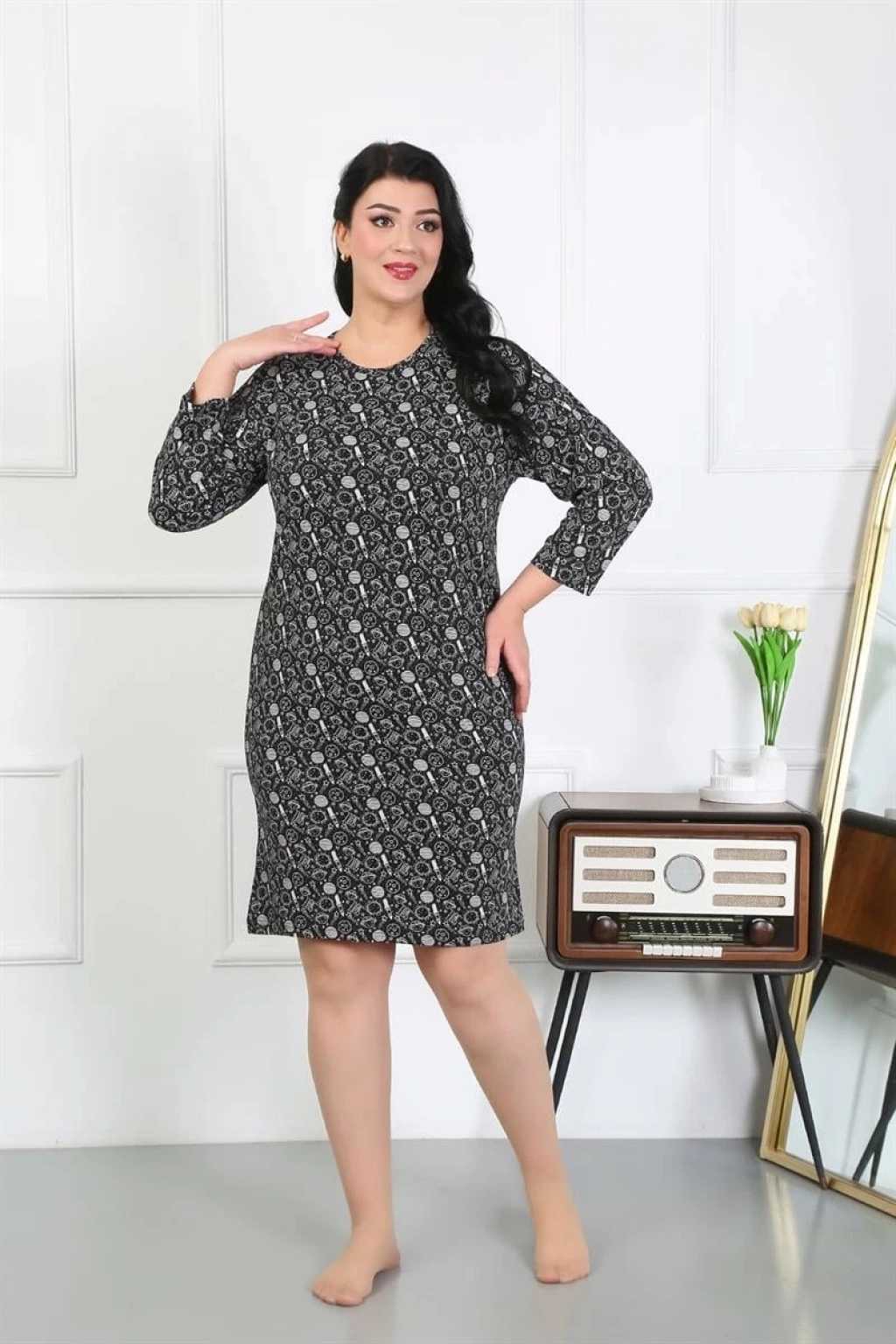 Çamaşır Kenti markasının şık ve konforlu Kadın Büyük Beden Penye Gecelik Ev Elbisesi Siyah, rahatlığı ve şıklığı bir arada sunuyor.