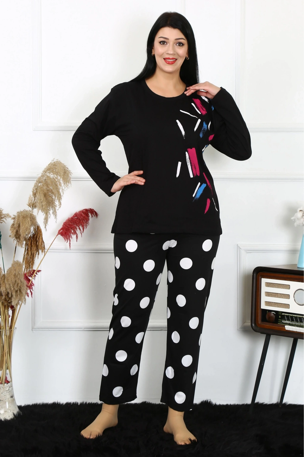 Çamaşır Kenti marka Kadın Büyük Beden Penye Uzun Kol Pijama Takımı, rahatlığı ve şıklığı bir arada sunar.