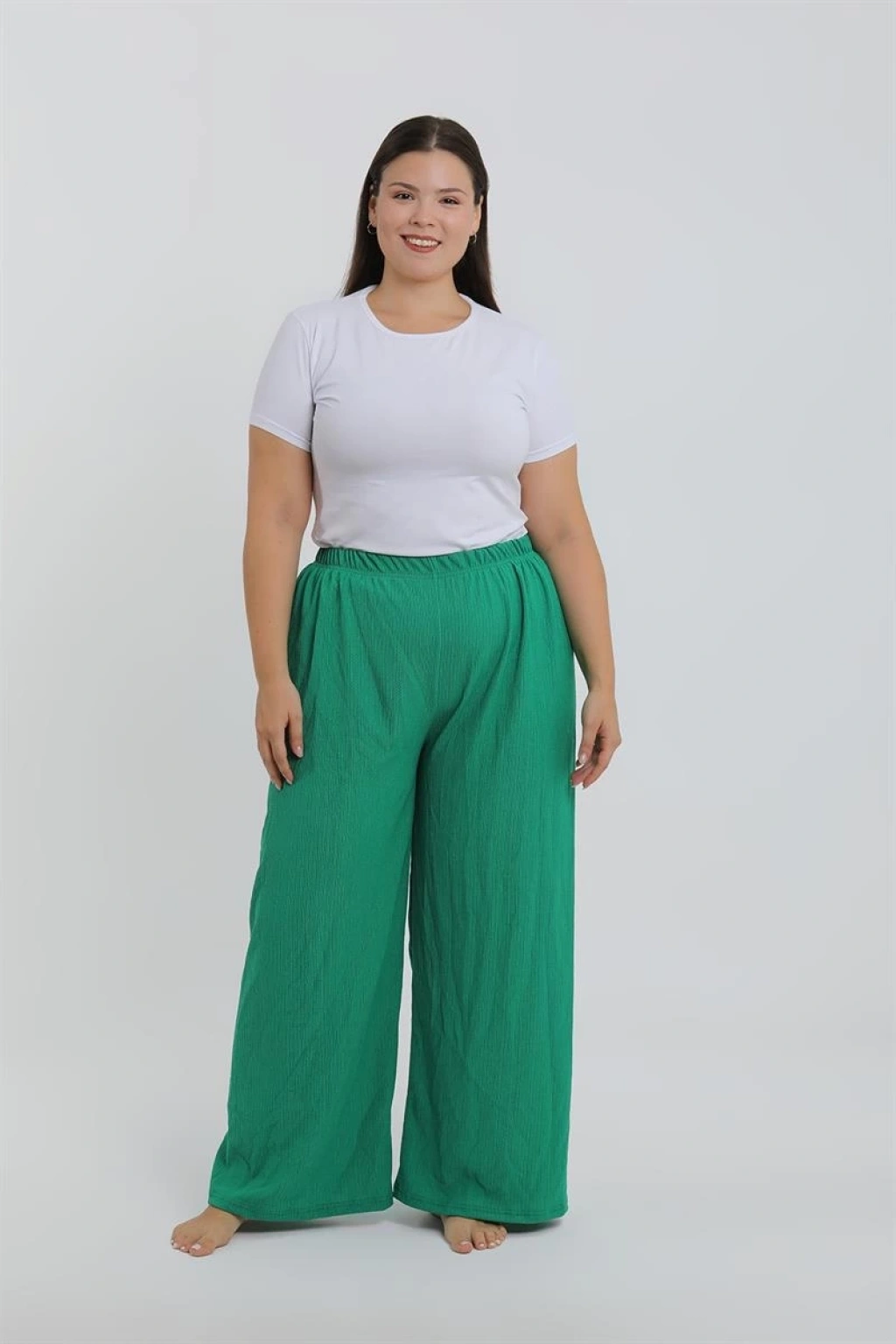 Çamaşır Kenti markasının kadınlar için özel olarak tasarladığı büyük beden yeşil rahat kesim baggy tek alt ile tarzınızı yansıtın. Bu şık pantolonla kendinizi hem rahat hem de şık hissedeceksiniz.
