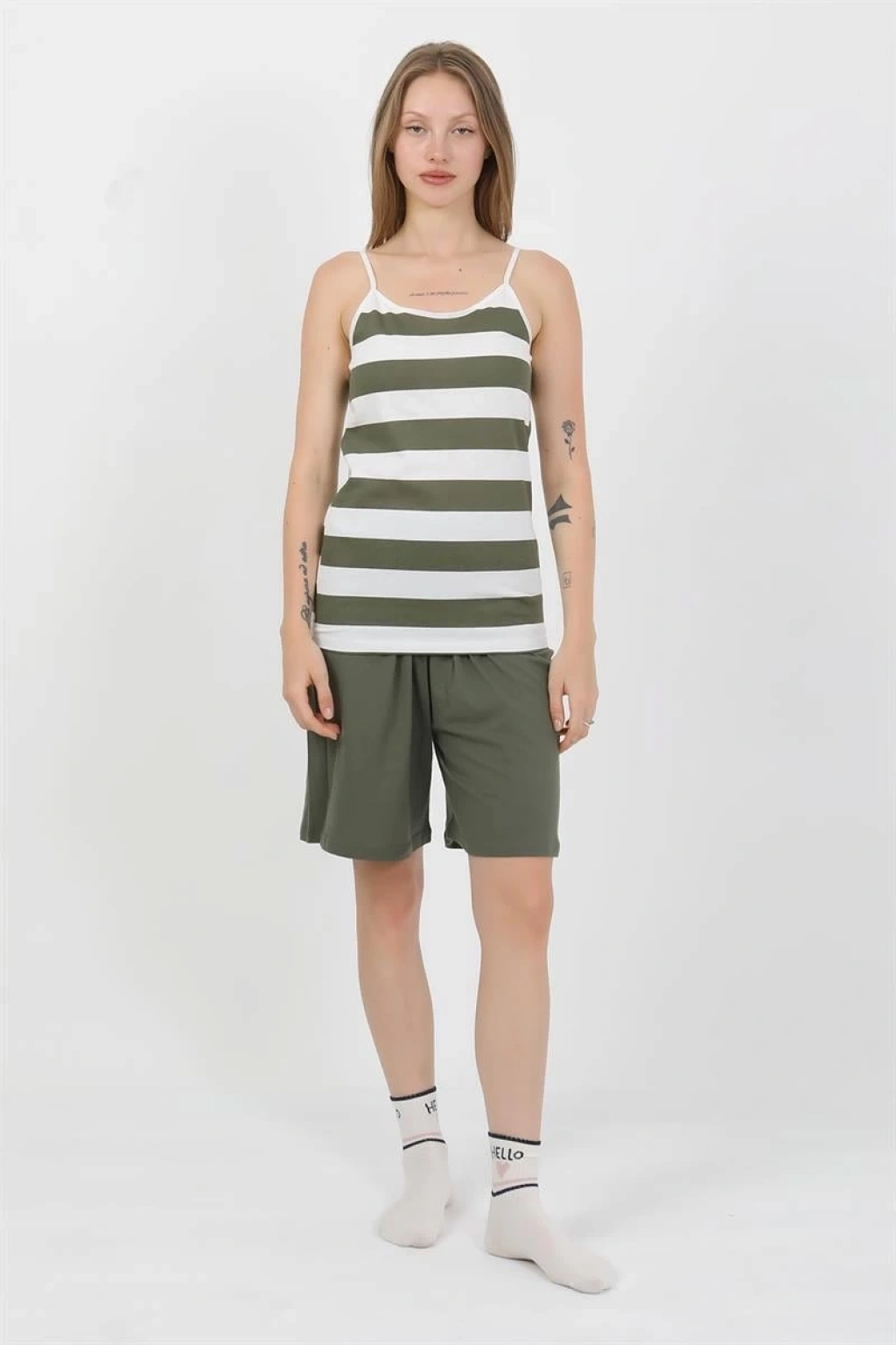 Çamaşır Kenti'nin şık ve rahat tasarımıyla öne çıkan Kadın İp Askılı Pamuk Penye Şortlu Takım Haki, yaz aylarının vazgeçilmez parçası olmaya aday! İnce ip askıları ve hafif dokusuyla maksimum konfor sunan bu takım, sıcak havalarda serinliği garantiler.