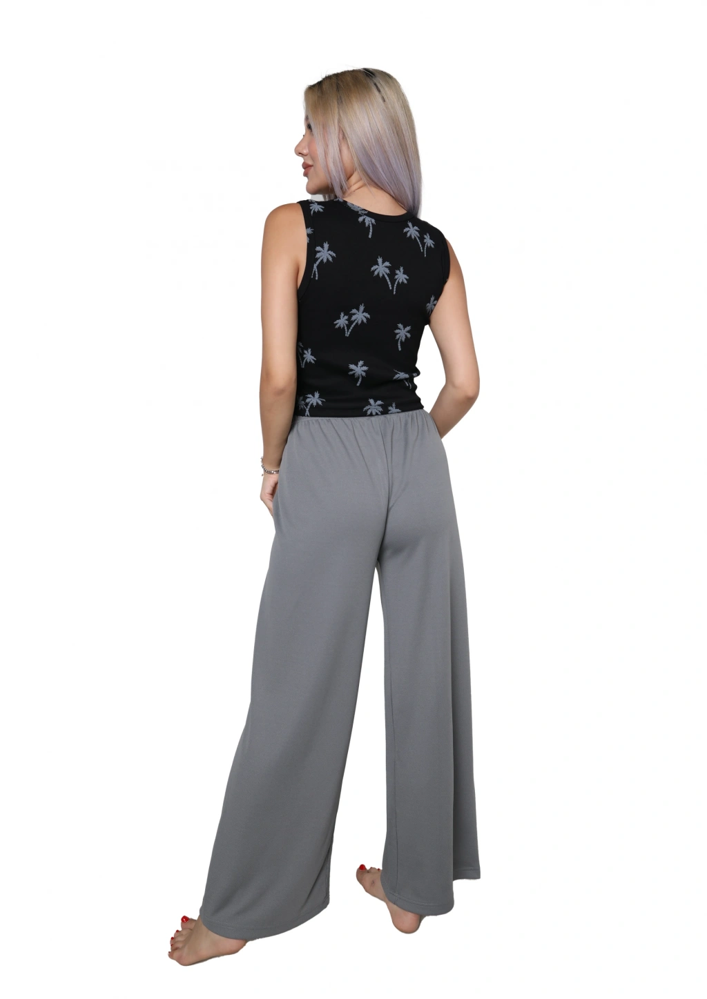 Bu harika takım ile her ortamda dikkatleri üzerinize çekmeye hazır olun. Çamaşır Kenti kalitesi ve şıklığı ile Kadın Kalın Askılı Body Bol Paça Pantolon 2'li Takım Siyah, şimdi sizi bekliyor!