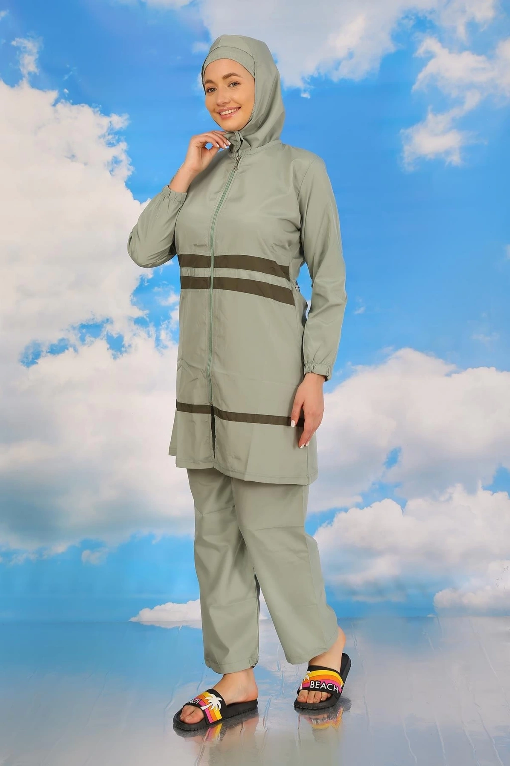 Çamaşır Kenti markasının özel tasarımı olan Kadın Tam Tesettür Mayo Su Yeşili ile plajda şıklık ve rahatlığı bir arada yaşayacaksınız.