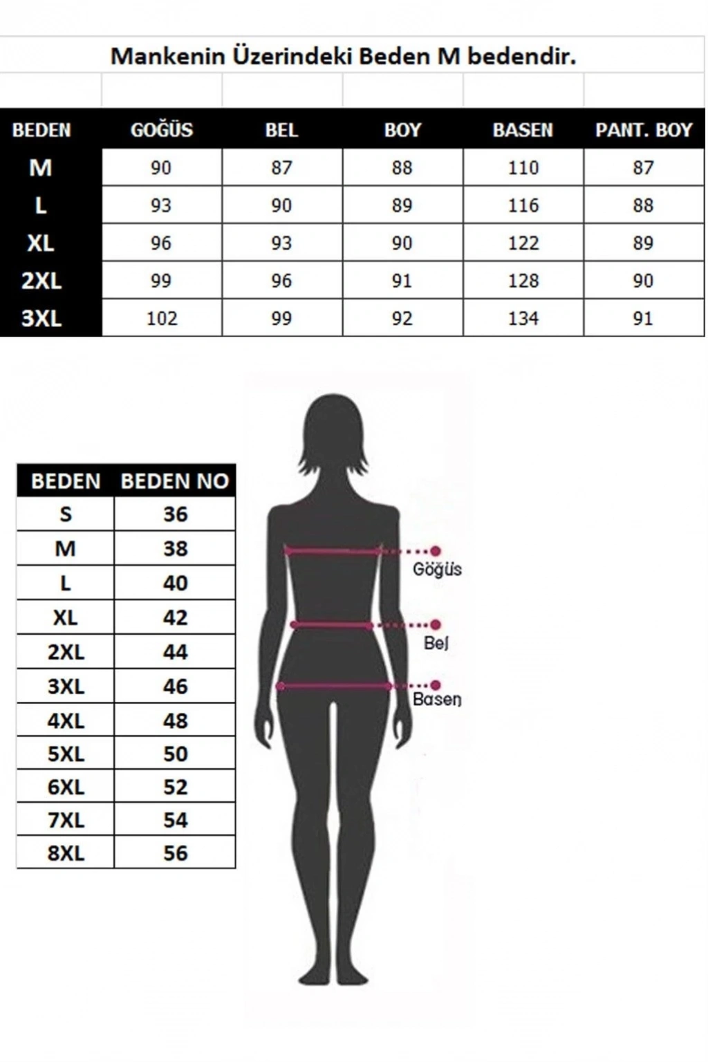 | BEDEN | GOĞÜS | BEL | BOY | BASEN | PANT. BOY |