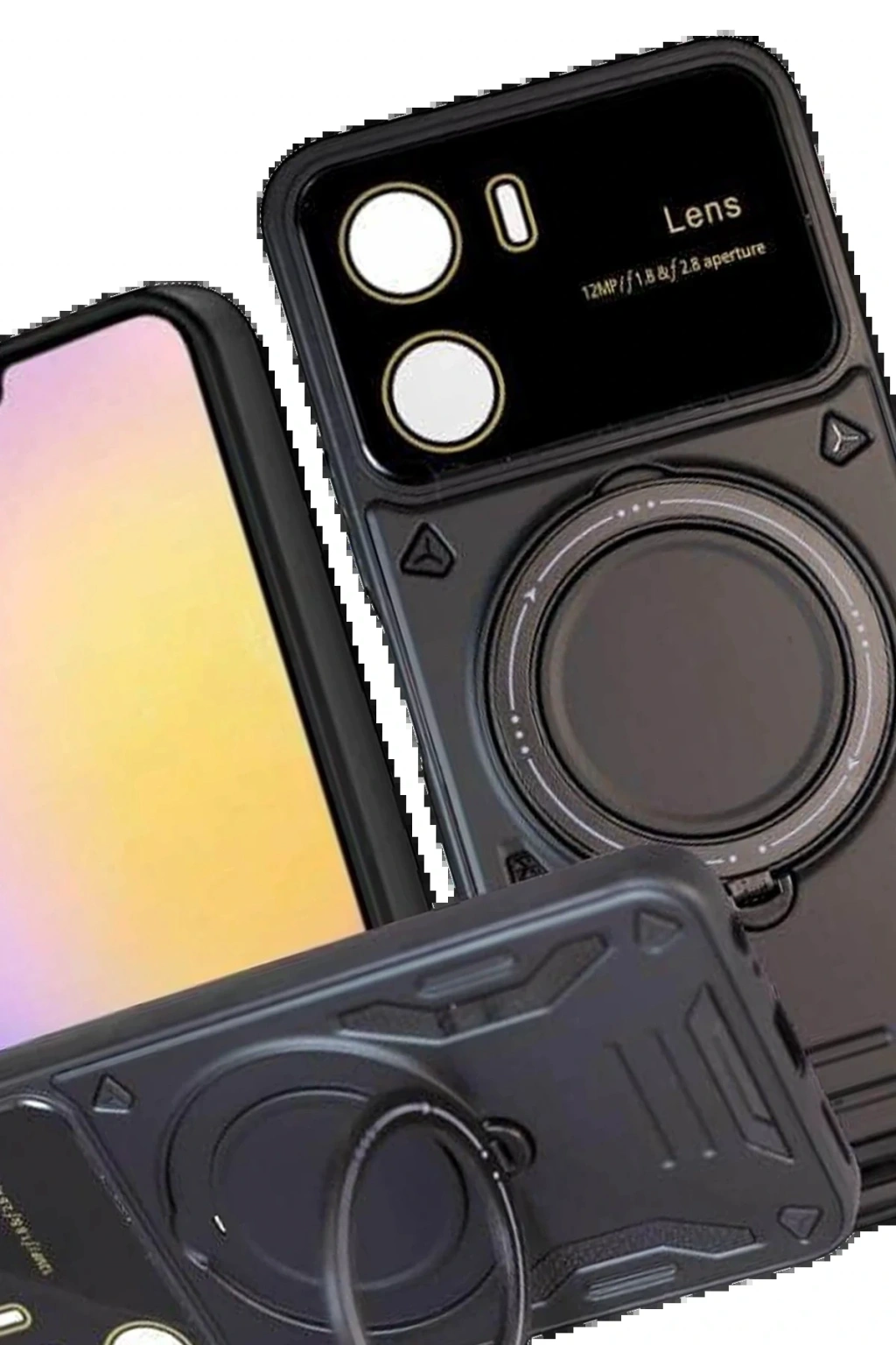 Vivo Y16 Kılıf Joy Lens Standlı Kapak - Siyah