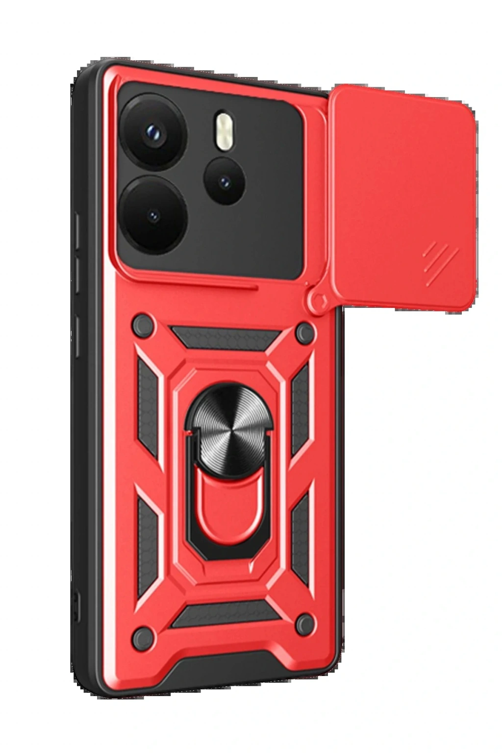 Xiaomi Redmi Note 14 4G Pars Lens Yüzüklü Silikon - Kırmızı