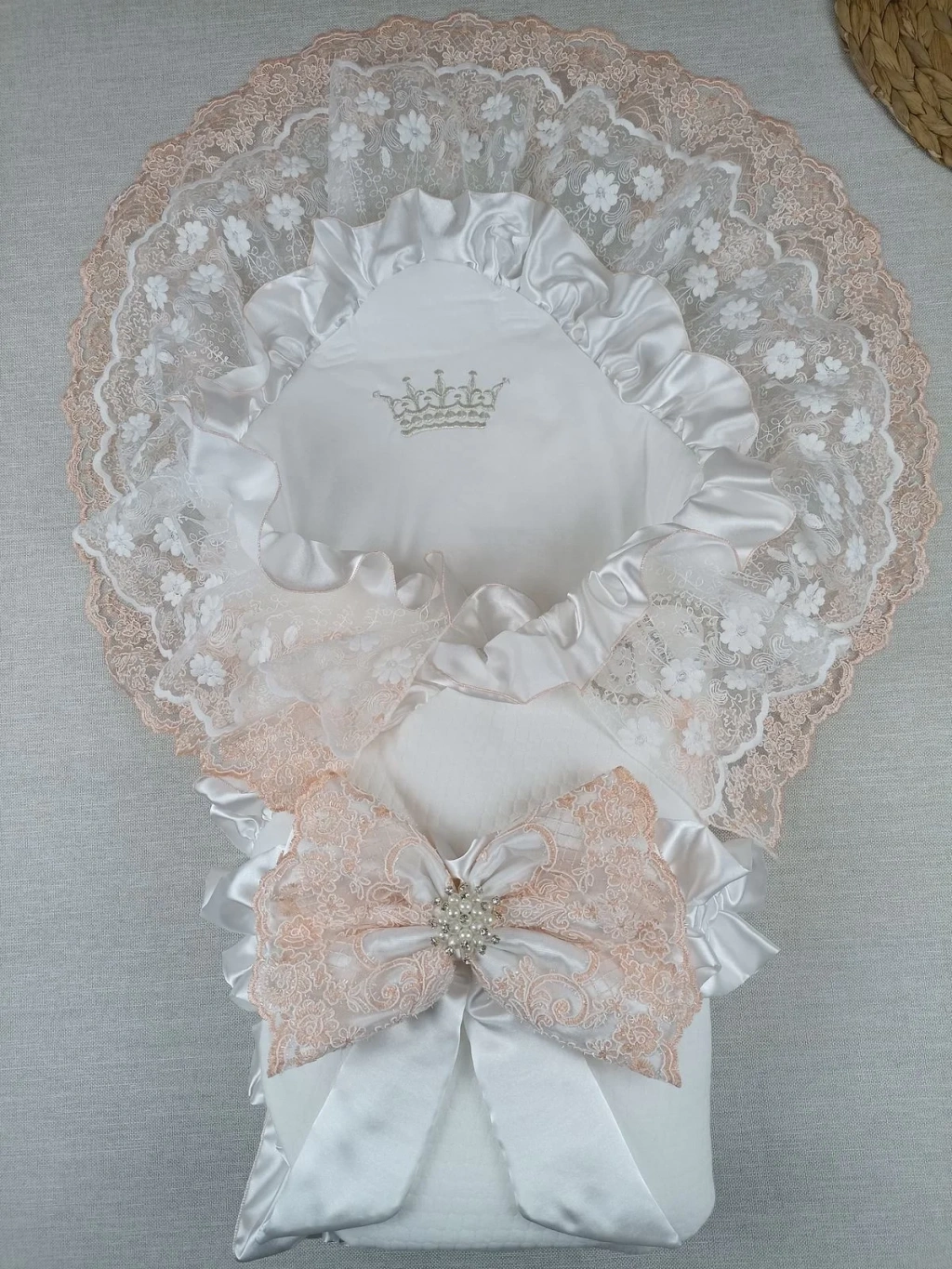 • Yenidoğan Bal Peteği Taç Nakışlı Lüks Kundak Bebek Battaniyesi