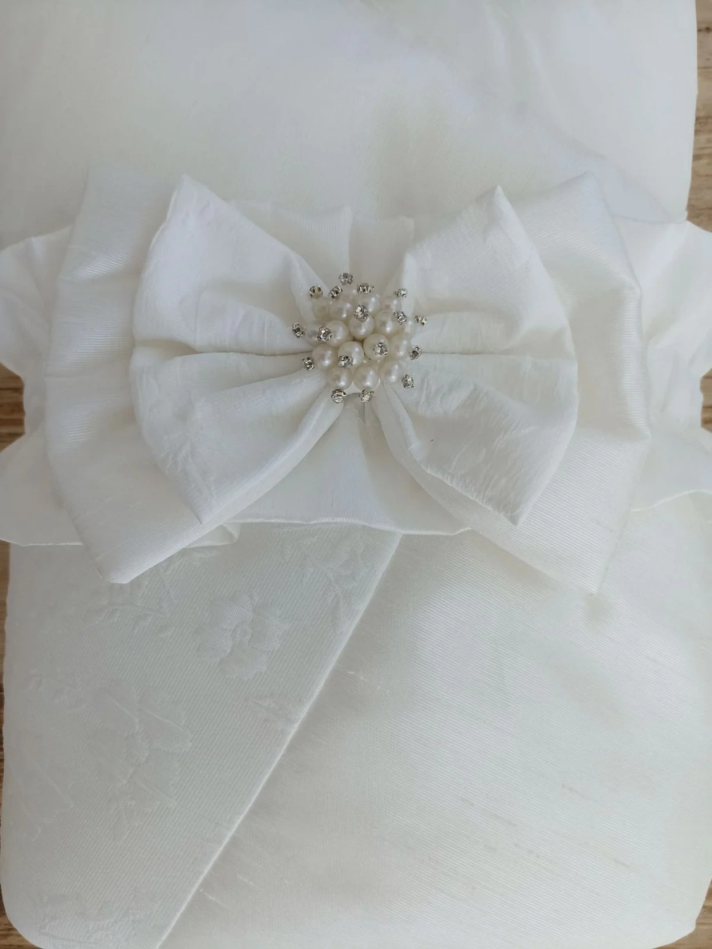 Yenidoğan Gelinlik Duvaklı Trilüks Kundak Bebek Battaniyesi Ekru