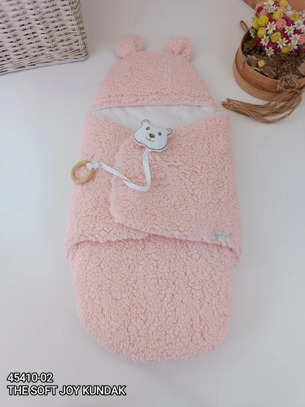 • Yenidoğan Kulaklı Şapkalı Açılır Kucaklı Cırt Kapamalı Bebek Battaniyesi Kundak