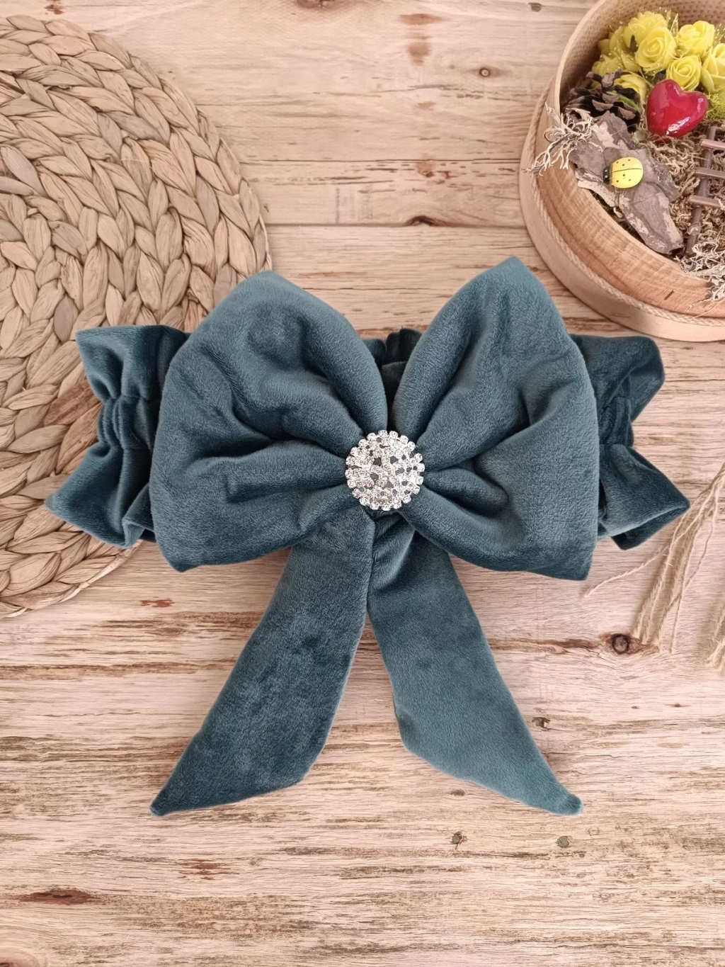 Yenidoğan Saray Kadife Taç Nakışlı İnci Fiyonklu Dantel Duvak Trilüks Kundak Bebek Battaniye Yeşil