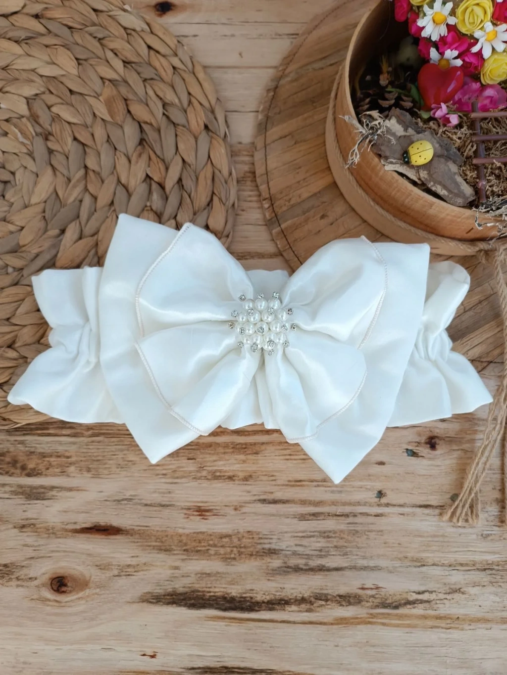 • Yenidoğan Wool Yün Kumaş Taç Nakışlı Güpür Duvaklı Fiyonk Prizma Taş Unisex Kundak Bebek Battaniyesi