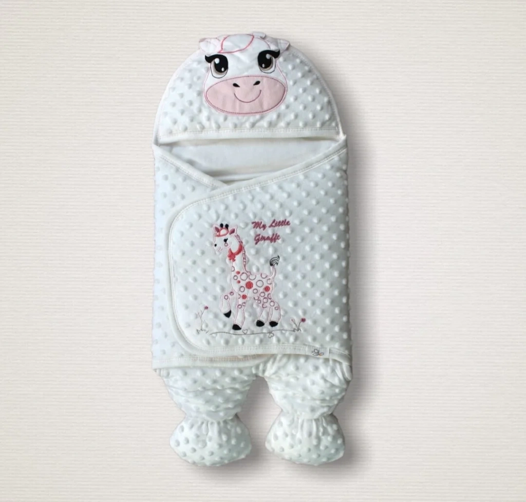 • Yenidoğan Zürafa Nakışlı Şapkalı Kız Erkek Bebek Ayaklı Kundak Bebek Battaniyesi